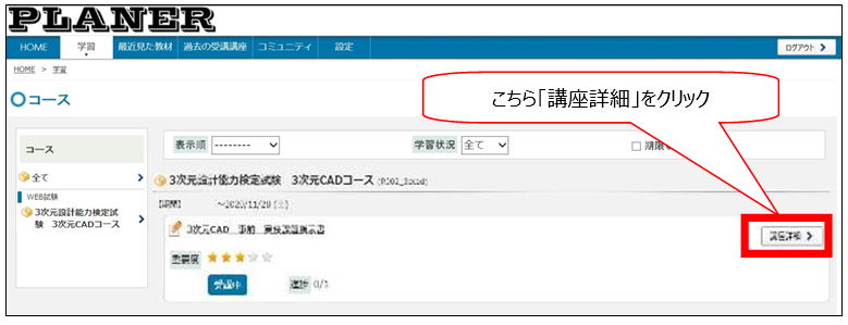 <3次元CAD試験を受験される方の事前画面(試験一週間前に表示)>